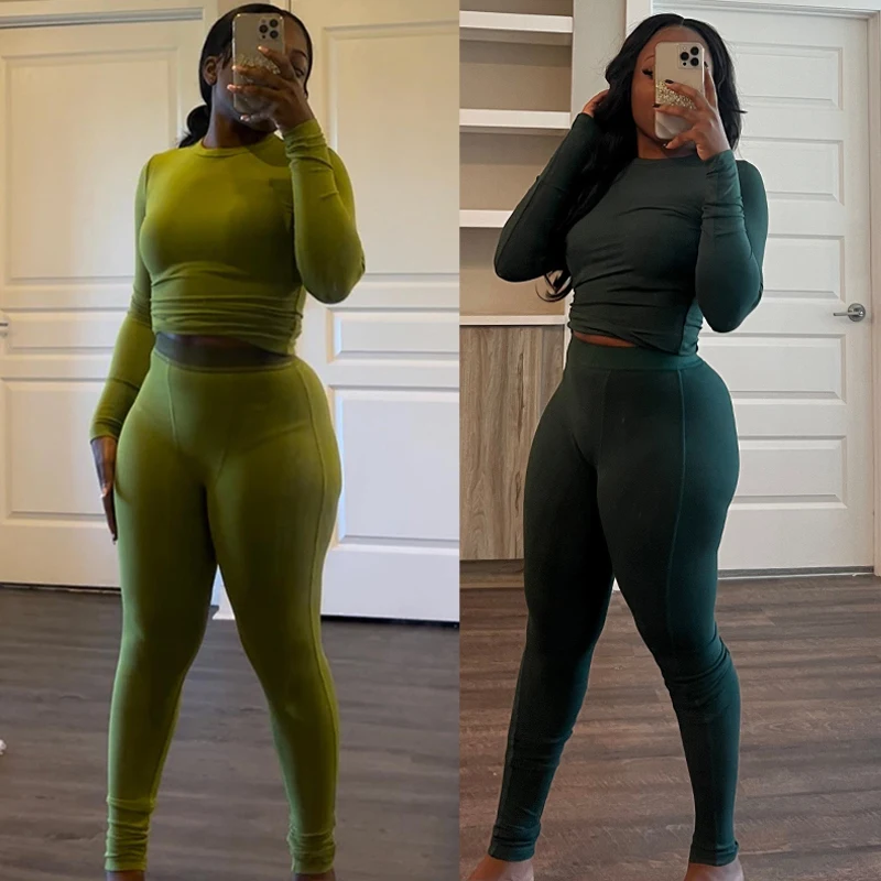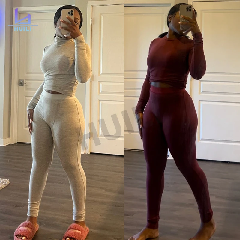 Huilil Custom High Quality Stretch Long Sleeve Skinny Tracksuits Two Piece Fitness Leggings Loungewear 2 Sets Outfits for Short